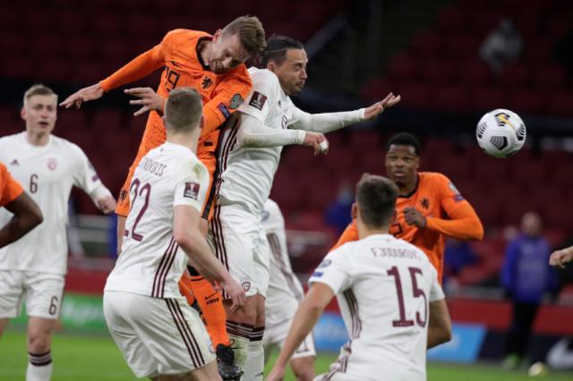 上轮对垒土耳其,橙军没有高中锋的轻量级锋线,有如隔靴搔痒,本场德波尔终于派上上轮打入1球的吕克·德容,摆着是要在对手身上多拿净胜球,而拉脱维亚也足够配合,无奈急于建功的橙军欲速不达,开场仅6分钟,上轮打进橙军世预赛首球的克拉森就迎来机会,但他门前接力吕克·德容摆渡的头球,被对方后卫门线救险。20分钟后阿贾克斯中场卷土重来,但这次他近在咫尺的头球,又砸在了横梁上,着实在主队球迷面前丢人现眼。而克拉森的坏运气,也继续传染着队友,上轮射术就极其辣眼的德派,远射上看台、推射滑门而出,而吕克·德容也没有一力降十会:面对四名后卫的围追堵截,塞维利亚前锋高高跃起冲顶,但皮球又砸在了横梁上。