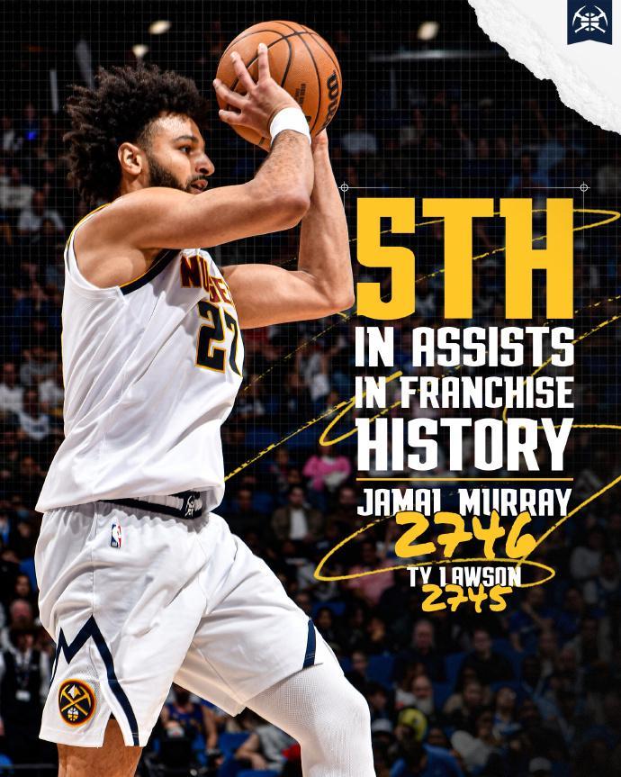 北京时间1月5日,NBA常规赛掘金客场对阵篮网,掘金缺少约基奇等多位主力,戈登、布劳恩与波特迎来复出。穆雷27+16助攻创生涯单场助攻纪录,且生涯助攻升至队史第五位迎来里程碑,引领掘金4人得分20+,依然难阻最多时刻落后22分,最终掘金115-127输给篮网遭遇2连败,篮网结束3连败。